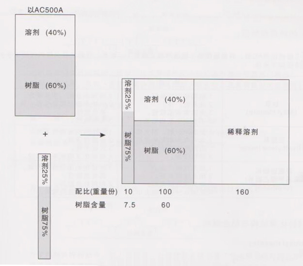 例:將AC-500A/AC-500B稀釋成固體含量25%時(shí)